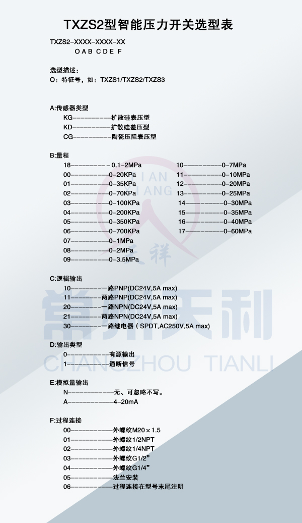 TXZS2智能壓力開(kāi)關(guān)基本參數(shù)