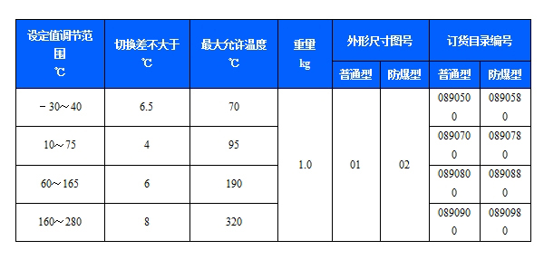 541/7T防爆溫度開關(guān)采用帶毛細管溫包式傳感器,可用于流動的中性氣體和液體介質(zhì),如果介質(zhì)為腐蝕性,安裝時可選用不銹鋼溫包保護套套在銅質(zhì)溫包外(見附件)。541/7T防爆溫度開關(guān)的設(shè)定值可調(diào),調(diào)節(jié)范圍-30~280℃。