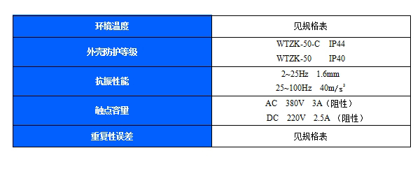 WTZK-50-C溫度開關(guān)采用帶毛細(xì)管溫包式的傳感器??捎糜趯︺~和銅合金無腐蝕作用的氣體、蒸汽等氣體介質(zhì)或液體介質(zhì)。WTZK-50-C溫度開關(guān)的設(shè)定值可調(diào),調(diào)節(jié)范圍-60~170℃。WTZK-50-C采用鑄鋁殼體,為防水型。WTZK-50-C溫度開關(guān)滿足船用條件。WTZK-50采用酚醛壓塑粉殼體,為普通型。