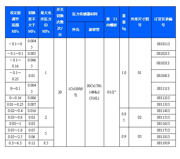 規(guī)格:切換差不可調(diào)(小切換差,無(wú)防爆型)
